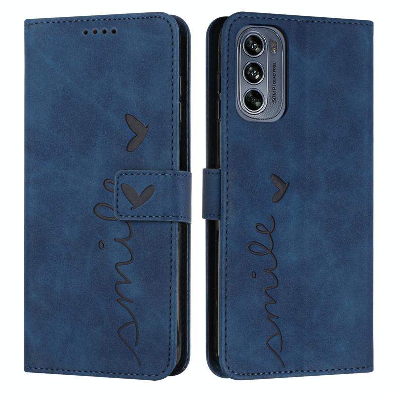 Θήκη τηλεφώνου από δέρμα με σχέδιο καρδιάς και αίσθηση δέρματος για Motorola Moto G62 5G (Μπλε)