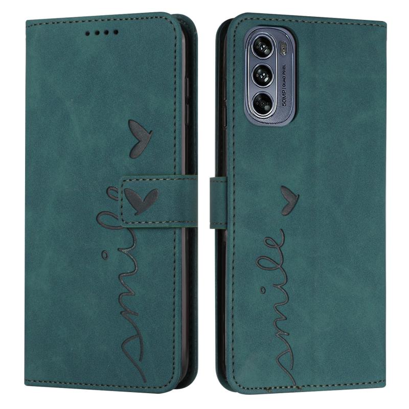 Θήκη τηλεφώνου από δέρμα με σχέδιο καρδιάς και αίσθηση δέρματος για Motorola Moto G62 5G (πράσινο)