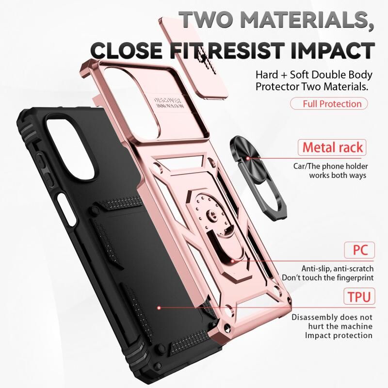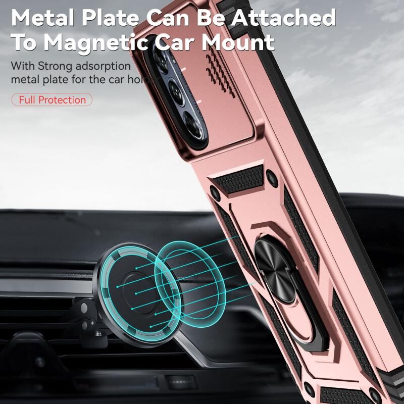 Για Motorola Moto G62 5G Συρόμενη θήκη για το κινητό τηλέφωνο με κάλυμμα κάμερας (ροζ χρυσό)