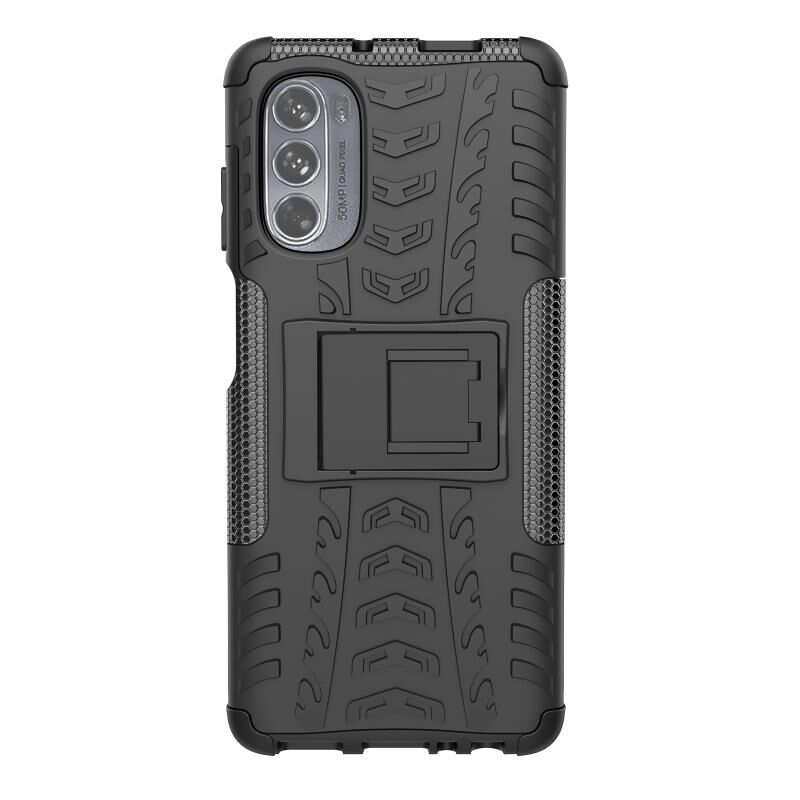 Θήκη κινητού τηλεφώνου για Motorola Moto G62 5G με υφή ελαστικού + PC και βάση στήριξης (Πορτοκαλί)