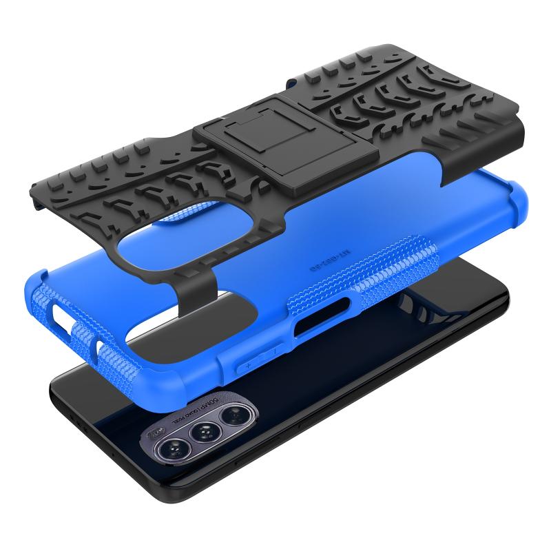 Θήκη κινητού τηλεφώνου για Motorola Moto G62 5G με υφή ελαστικού + PC και βάση στήριξης (Πορτοκαλί)