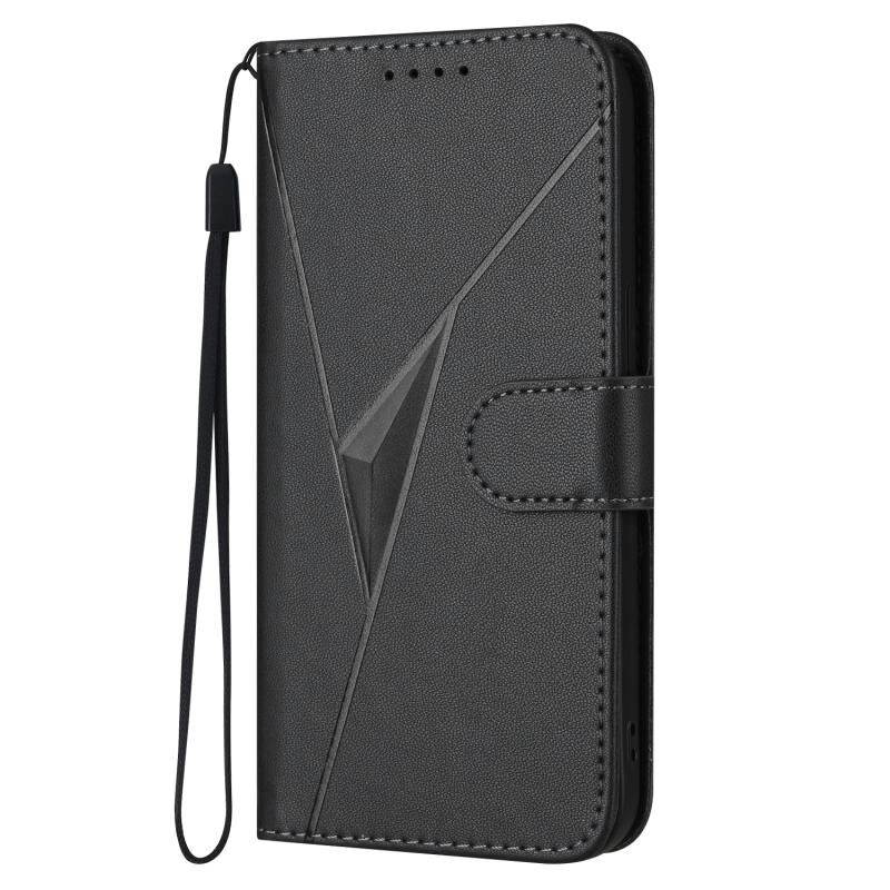Για Motorola Moto G62 5G Τρίγωνο μοτίβο αγκράφα κούμπωμα δερμάτινη θήκη τηλεφώνου (Μαύρο)