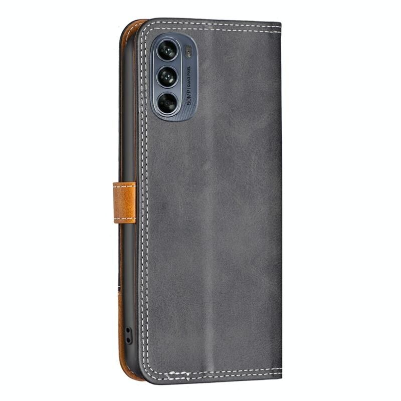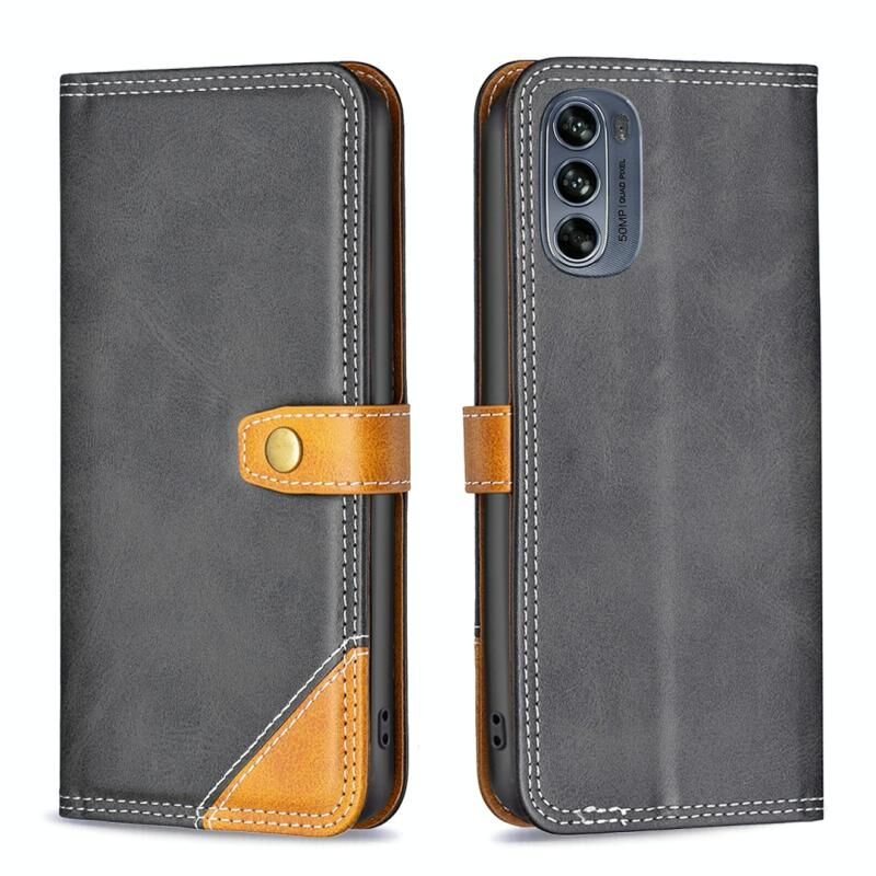 Για Motorola Moto G62 Χρώμα που ταιριάζει με το χρώμα Διπλό νήμα ραψίματος Δερμάτινη θήκη τηλεφώνου (Μαύρο)