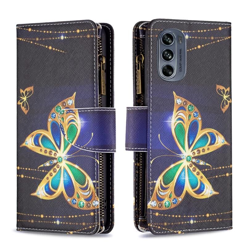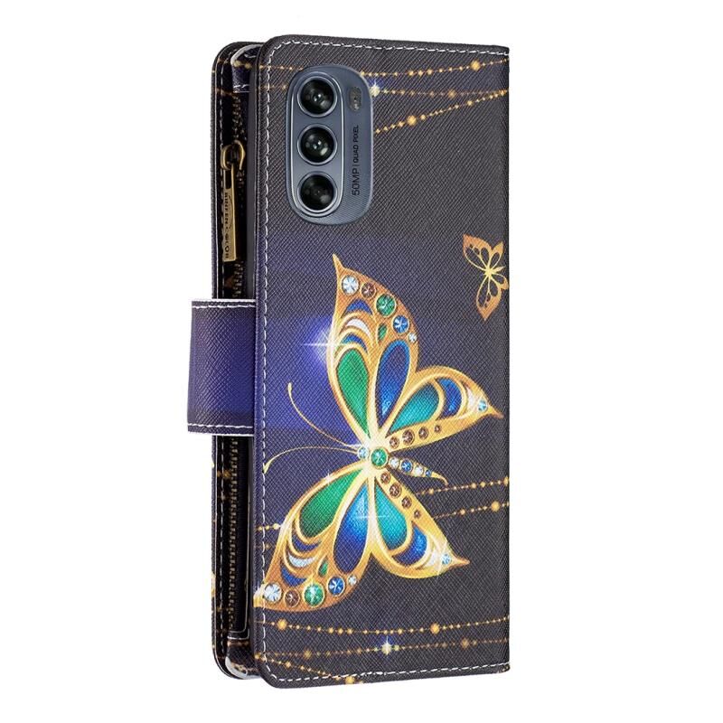 Θήκη κινητού τηλεφώνου από δέρμα με φερμουάρ και πολύχρωμο σχέδιο για Motorola Moto G62 (Κόκκινο)