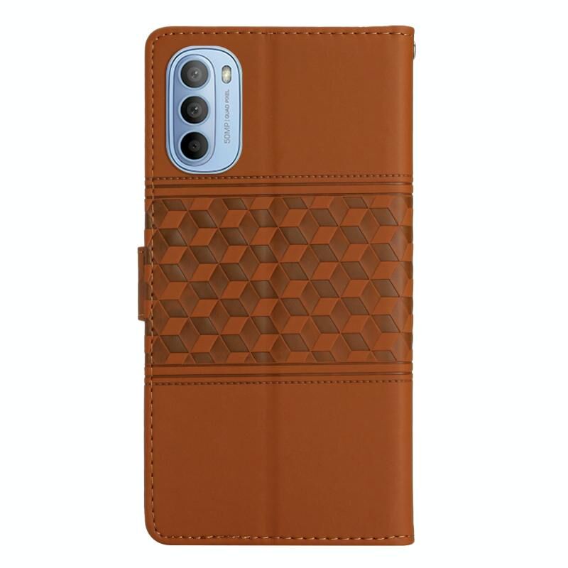 Θήκη κινητού τηλεφώνου δερμάτινη με ανάγλυφο σχέδιο για Motorola Moto G62 με κορδόνι (Μωβ)