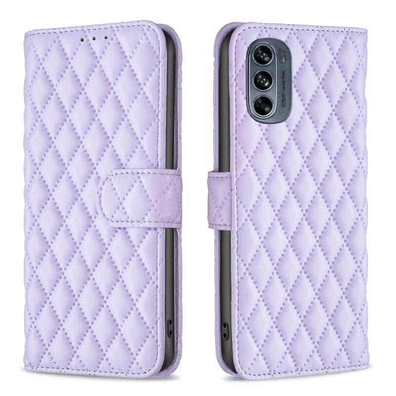 Για Motorola Moto G62 Diamond Lattice πορτοφόλι δέρμα Flip υπόθεση τηλεφώνου (Μωβ)