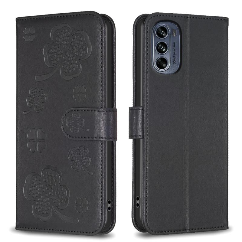 For Motorola Moto G62 Four-leaf Embossed Leather Phone Case(Black)