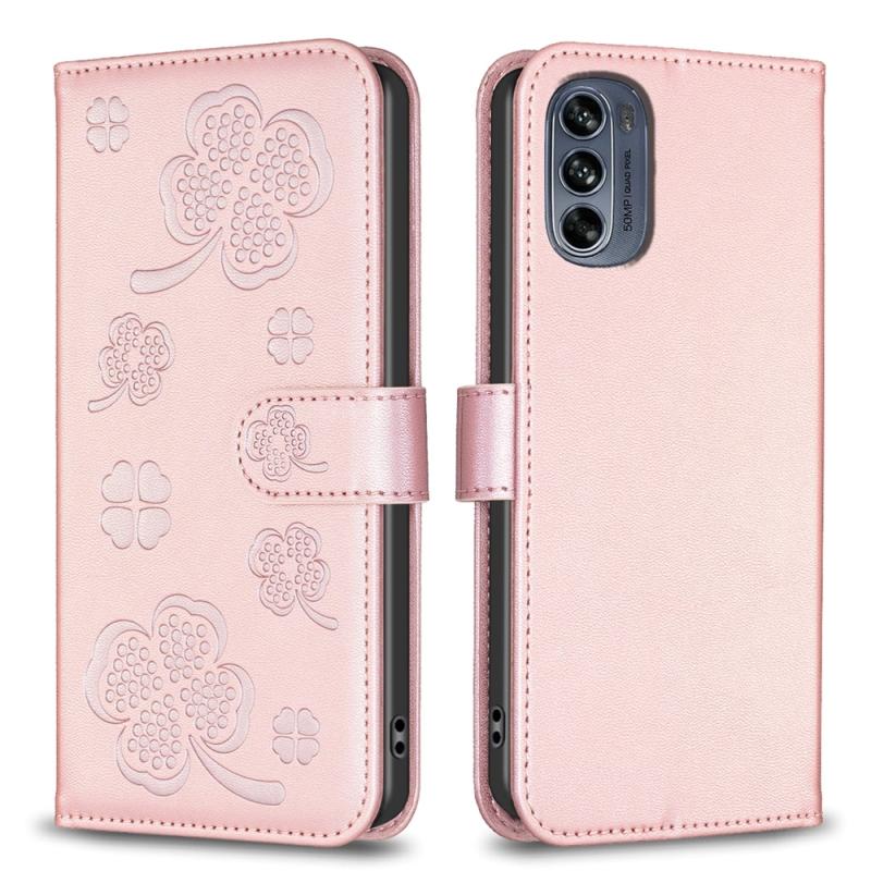 For Motorola Moto G62 Four-leaf Embossed Leather Phone Case(Pink)