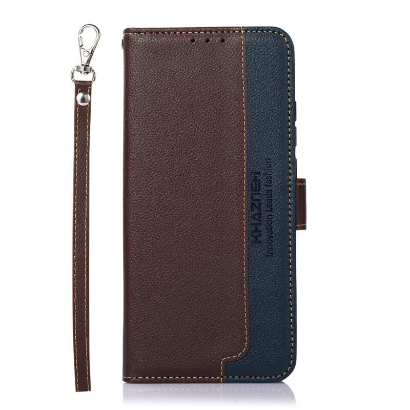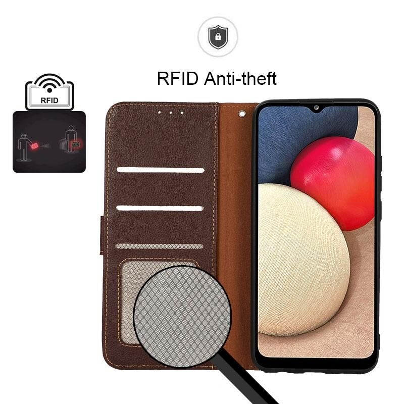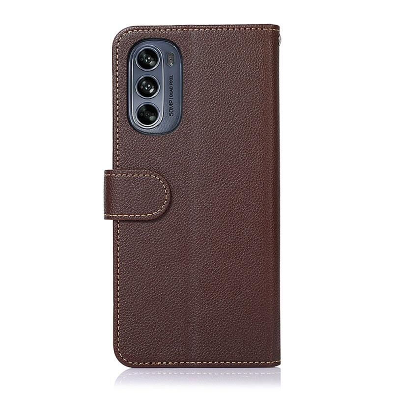Θήκη κινητού τηλεφώνου Motorola Moto G62 KHAZNEH με δερμάτινη υφή Litchi και προστασία RFID (Μαύρο)