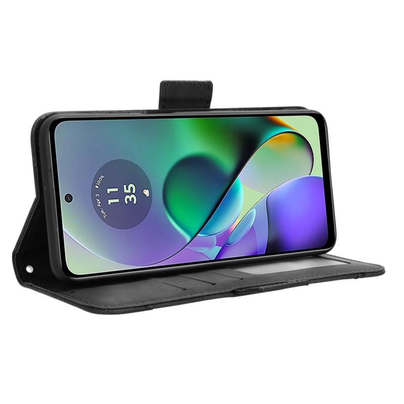 Θήκη τηλεφώνου από δέρμα με υφή μοσχαριού και θήκες καρτών για Motorola Moto G64 5G / G64y 5G (Μαύρο)