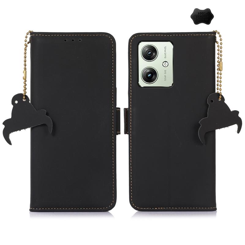 For Motorola Moto G64 5G Genuine Leather Magnetic RFID Leather Phone Case(Black)