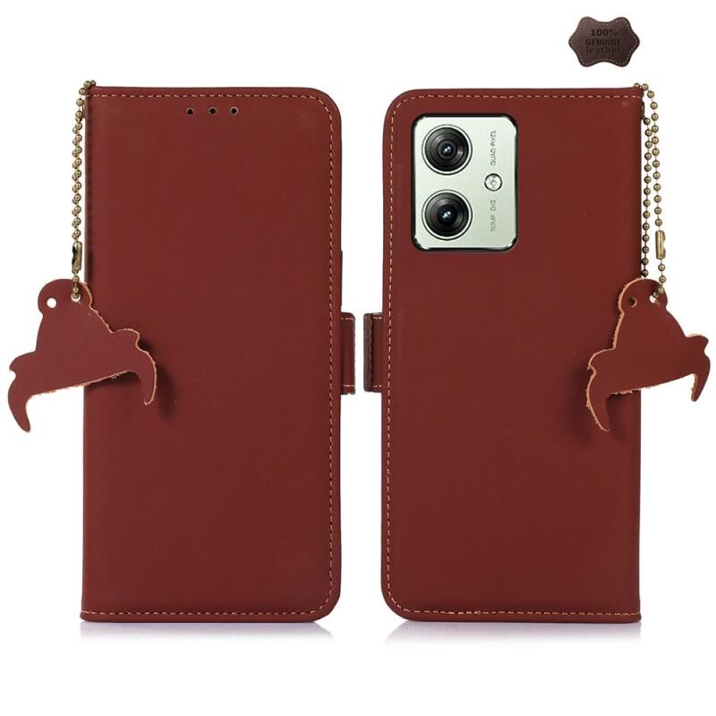 Θήκη τηλεφώνου από γνήσιο δέρμα με μαγνητικό κλείσιμο και προστασία RFID για Motorola Moto G64 5G (Καφέ)