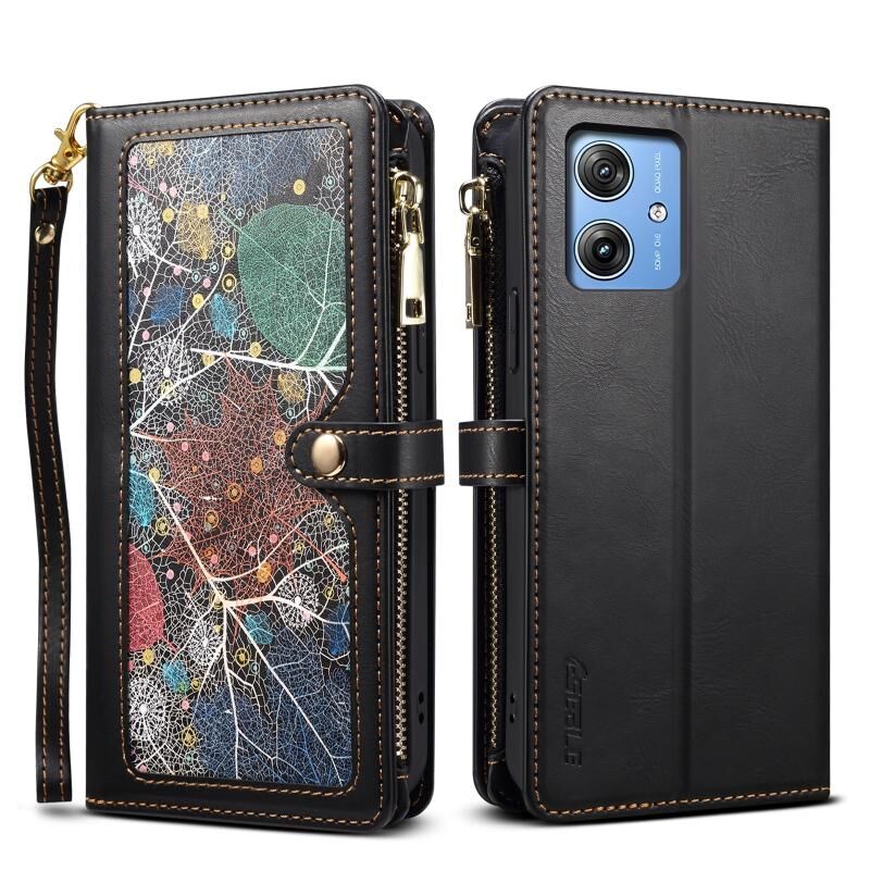 Για Motorola Moto G64 5G Global Θήκη Δερμάτινη με Φερμουάρ και Λουρί Λαιμού Σειράς Star ESEBLE με Προστασία RFID (Καφέ) (Μαύρο)