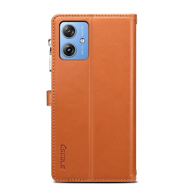Για Motorola Moto G64 5G Global Θήκη Δερμάτινη με Φερμουάρ και Λουρί Λαιμού Σειράς Star ESEBLE με Προστασία RFID (Καφέ) (ESEBLE)