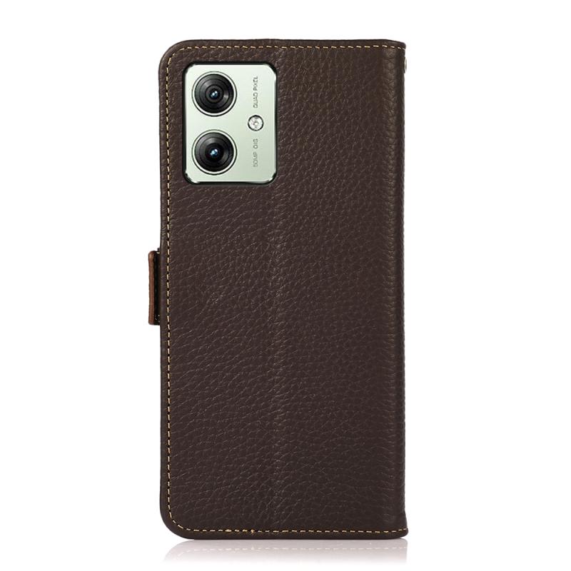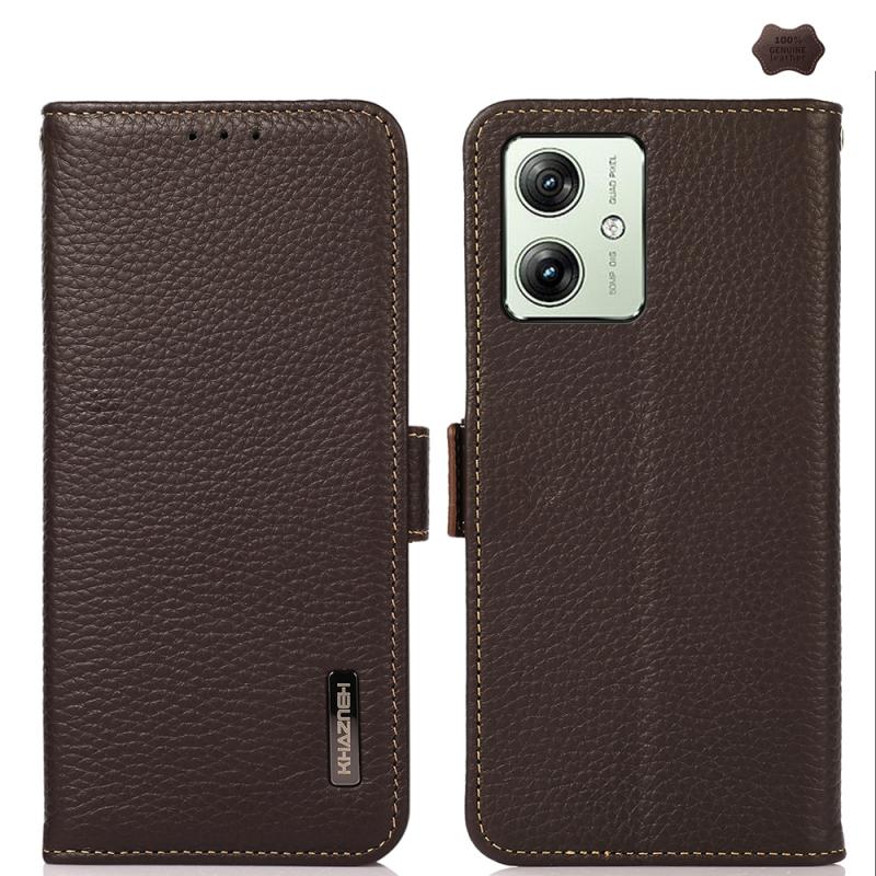 For Motorola Moto G64 5G KHAZNEH Side-Magnetic Litchi Genuine Leather RFID Phone Case(Brown)