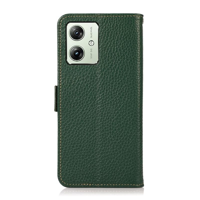 Θήκη τηλεφώνου Motorola Moto G64 5G KHAZNEH με μαγνητικό κλείσιμο, γνήσιο δέρμα Litchi, RFID (πράσινο)