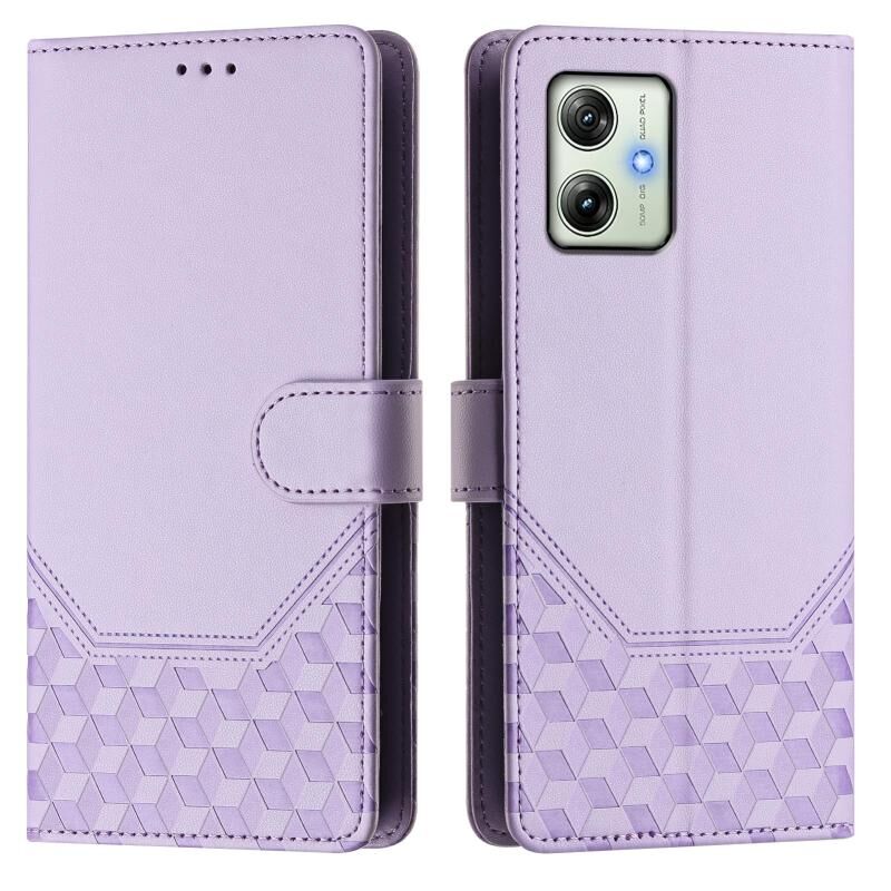 Για Motorola Moto G64 Ινδία / G54 5G Ινδία Honeycomb ανάγλυφη RFID δερμάτινη θήκη τηλεφώνου (ανοιχτό μοβ)