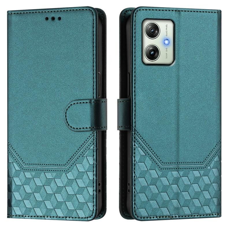 Για Motorola Moto G64 Ινδία / G54 5G Ινδία Honeycomb ανάγλυφη RFID δερμάτινη θήκη τηλεφώνου (Πράσινο παγώνι)