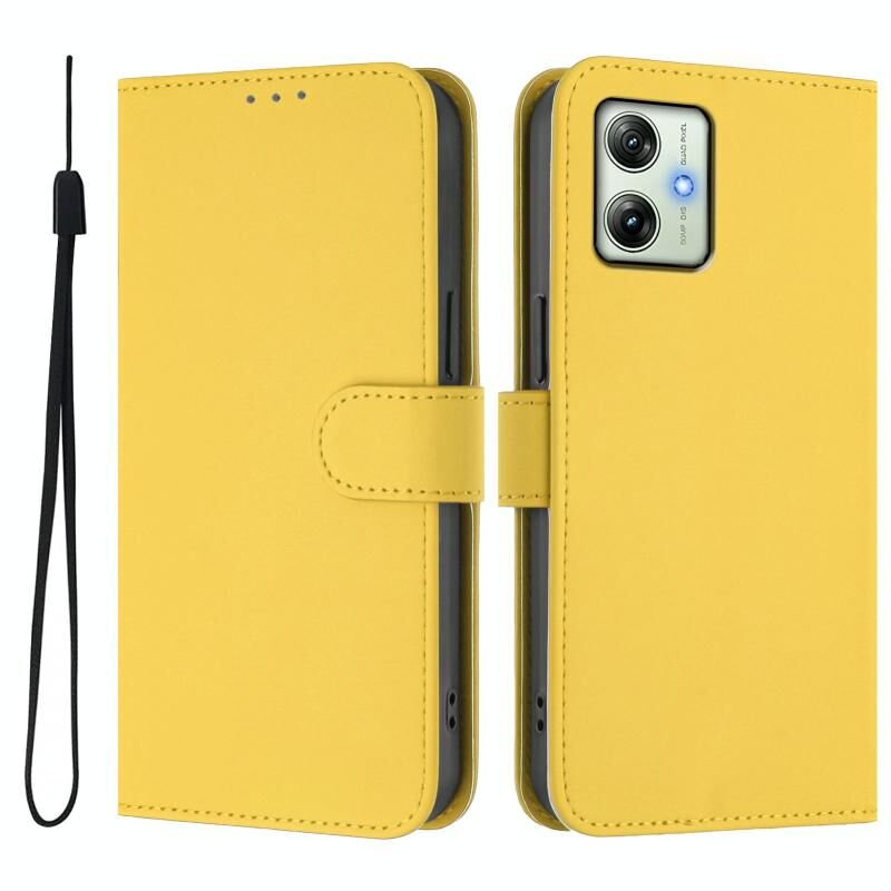 Για το Motorola Moto G64 Ινδία δέρμα αίσθηση στερεό χρώμα δέρμα τηλέφωνο υπόθεση με κορδόνι (λεμόνι κίτρινο)