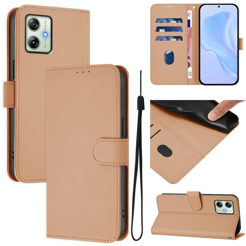 Για Motorola Moto G64 Ινδία δέρμα αίσθηση Solid Color δέρμα τηλέφωνο υπόθεση με κορδόνι (Nude)