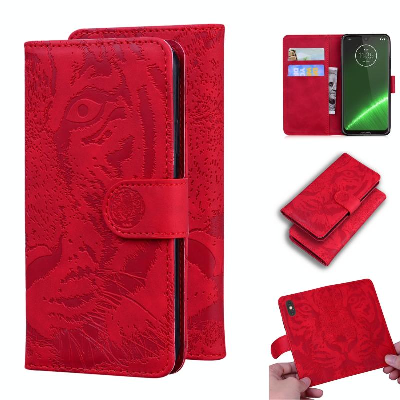 For Motorola Moto G7 / G7 Plus (EU Version) Tiger Embossing Pattern Horizontal Flip Leather Case with Holder & Card Slots & Wallet(Red)