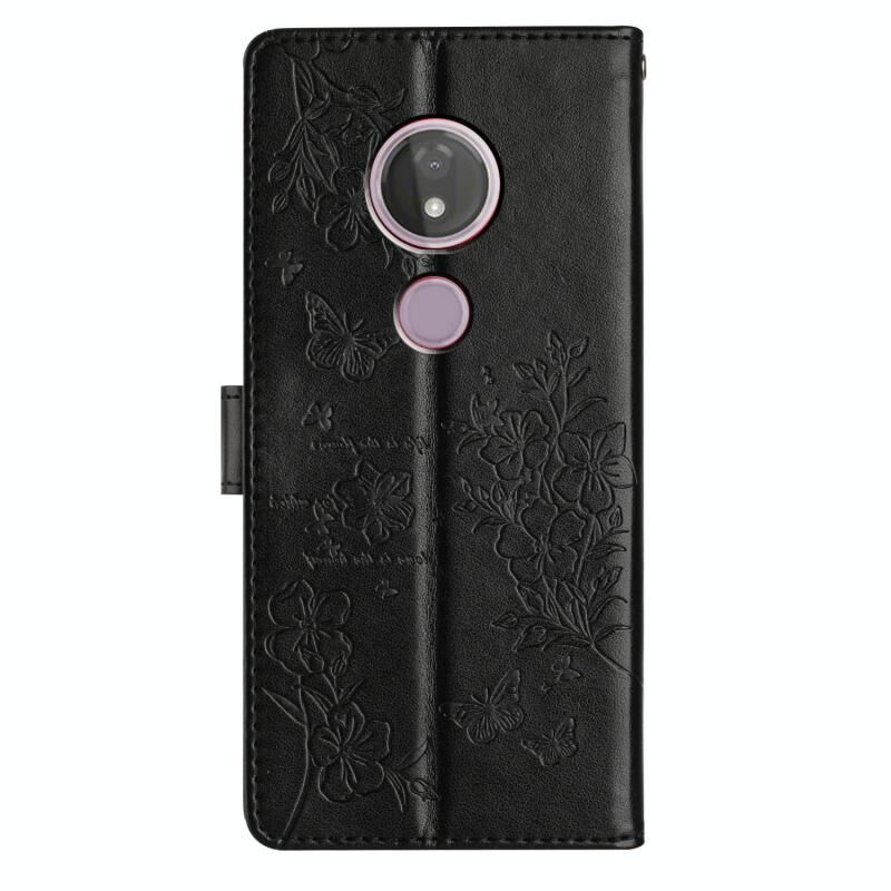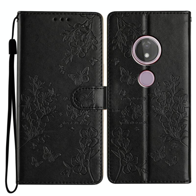 For Motorola Moto G7 Power Butterflies and Flowers Leather Phone Case(Black)