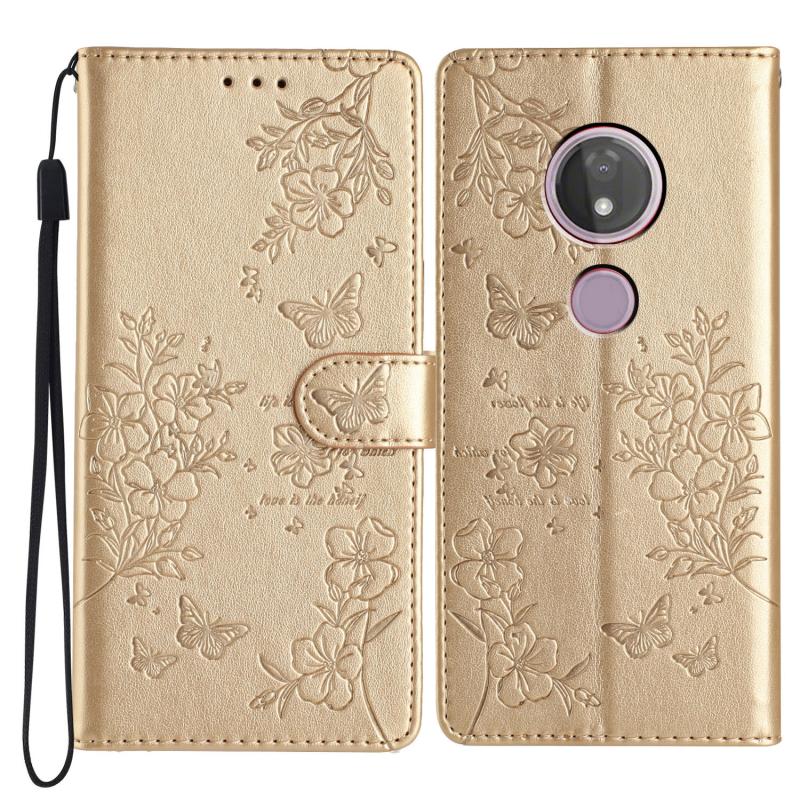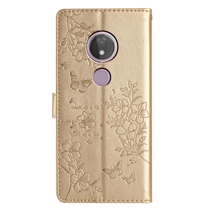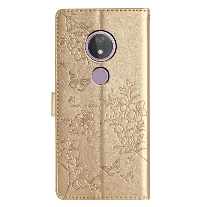 Θήκη τηλεφώνου δερμάτινη για Motorola Moto G7 Power με σχέδια πεταλούδες και λουλούδια (Χρυσό)