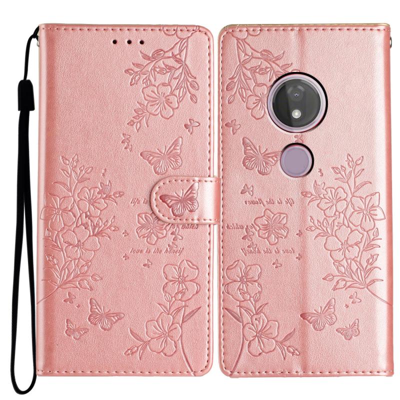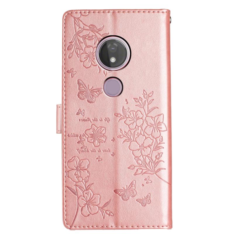 For Motorola Moto G7 Power Butterflies and Flowers Leather Phone Case(Rose Gold)