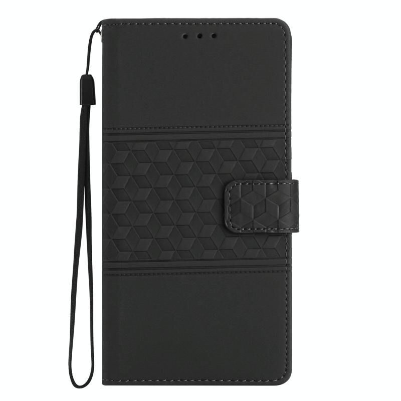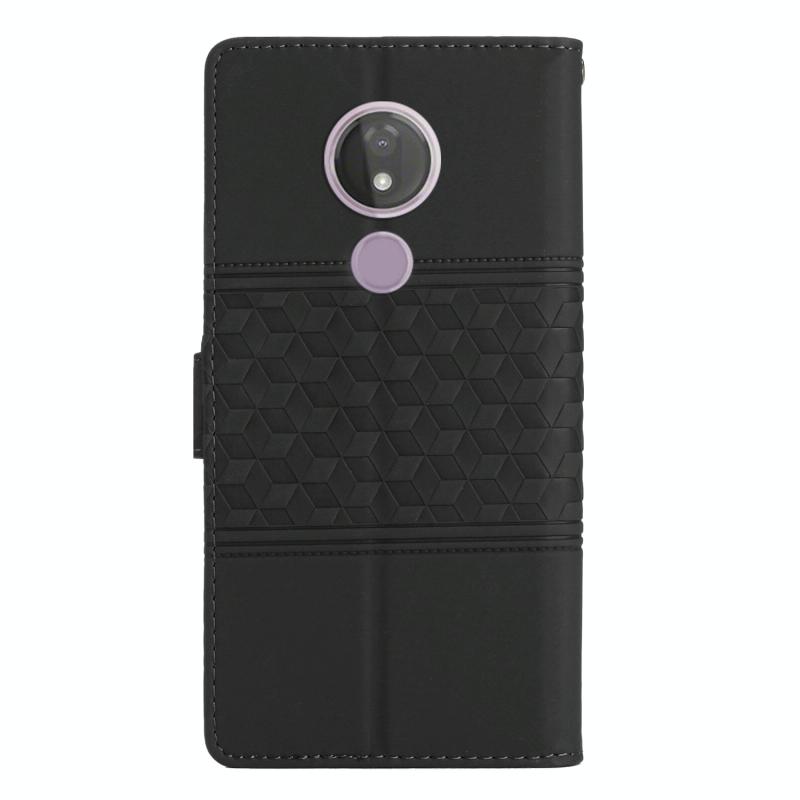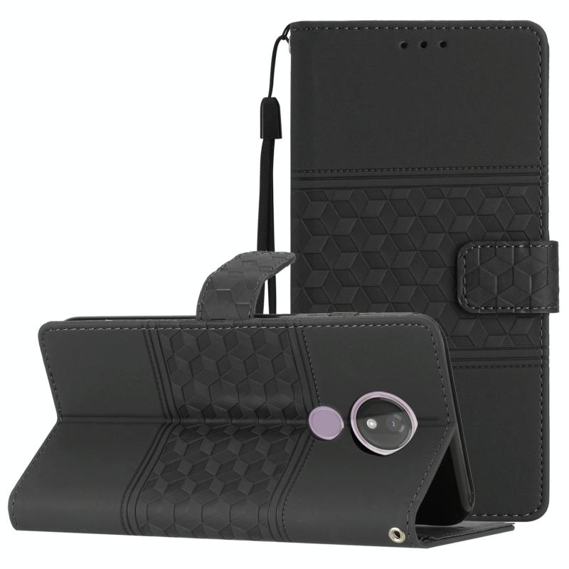 Θήκη κινητού τηλεφώνου δερμάτινη με ανάγλυφο σχέδιο διαμαντιού για Motorola Moto G7 Power με κορδόνι (Μαύρο)