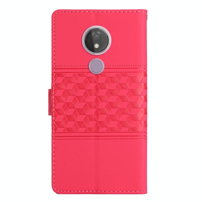 Θήκη κινητού τηλεφώνου δερμάτινη με ανάγλυφο σχέδιο διαμαντιού για Motorola Moto G7 Power με κορδόνι (Κόκκινο)