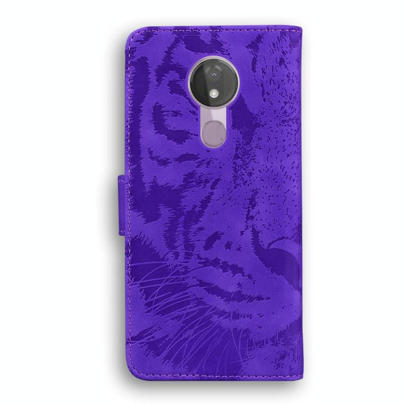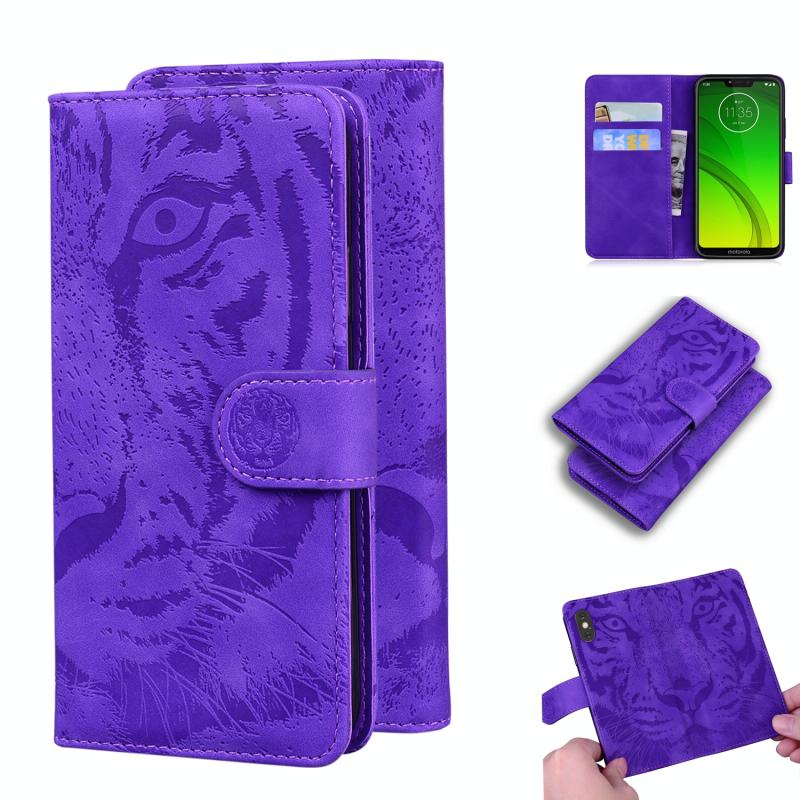 For Motorola Moto G7 Power (EU Version) Tiger Embossing Pattern Horizontal Flip Leather Case with Holder & Card Slots & Wallet(Purple)