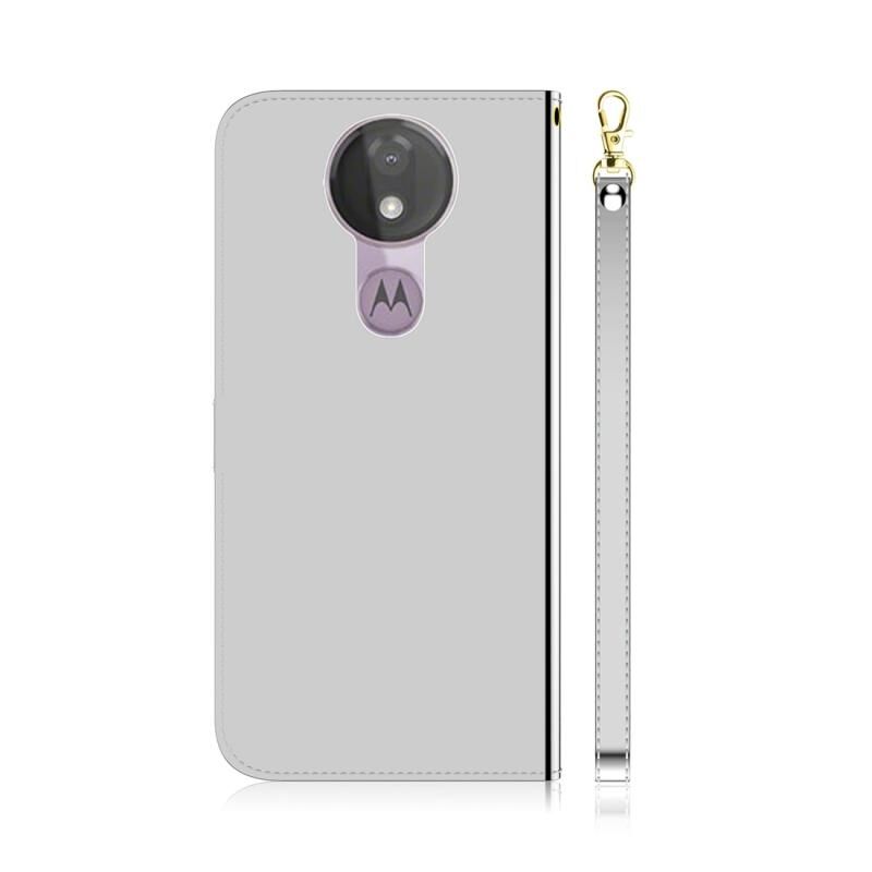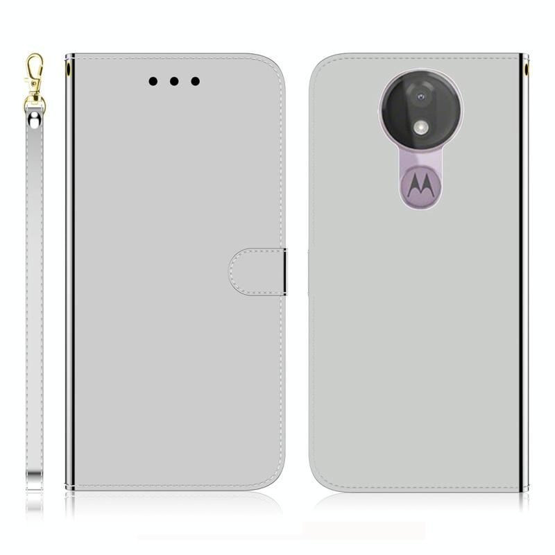 Για Motorola Moto G7 Power Απομιμητική επιφάνεια καθρέφτη Οριζόντια Flip δερμάτινη θήκη με θήκη & υποδοχές για κάρτες & πορτοφόλι & κορδόνι (Ασημί)