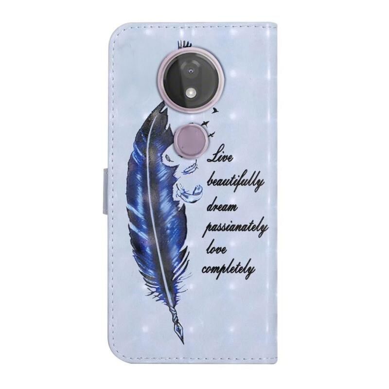 Θήκη τηλεφώνου δερμάτινη με ανάγλυφο σχέδιο λαδιού 3D για Motorola Moto G7 Power (Μπλε Πεταλούδες)