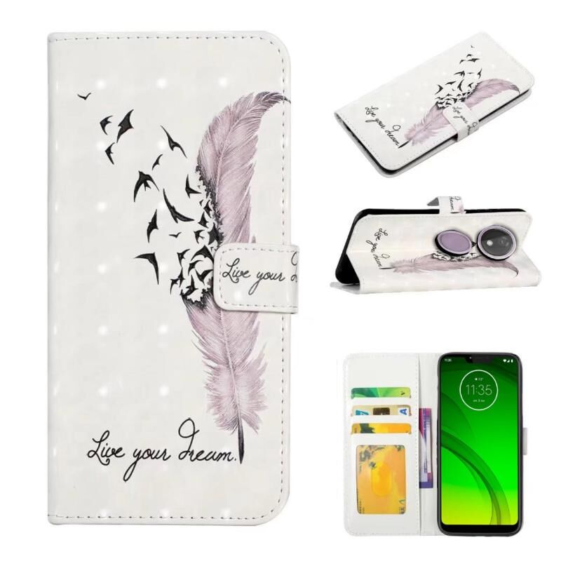 Θήκη τηλεφώνου δερμάτινη με ανάγλυφο σχέδιο λαδιού 3D για Motorola Moto G7 Power (Φτερό)