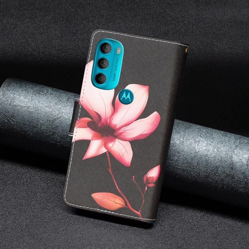 Θήκη τηλεφώνου δέρμα με οριζόντιο άνοιγμα και φερμουάρ, με έγχρωμο σχέδιο για Motorola Moto G71 5G (Λωτός)