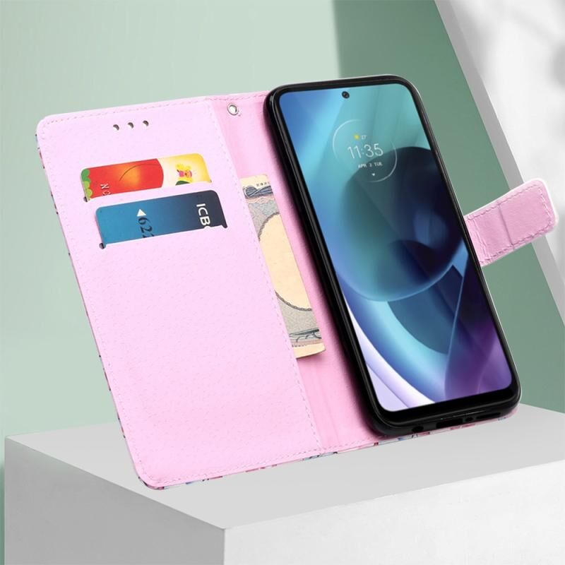 Θήκη τηλεφώνου από δέρμα με απλή ύφανση και πολύχρωμο σχέδιο για Motorola Moto G71 5G (Κόκκινο)