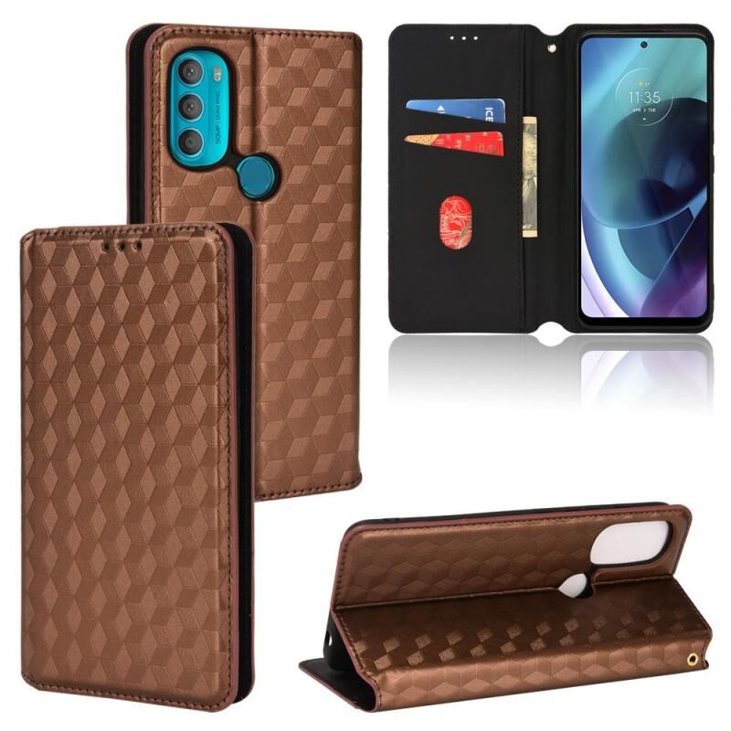 Θήκη τηλεφώνου από δέρμα με υφή Cubic Grid για Motorola Moto G71 5G (Καφέ)