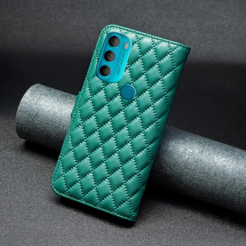 Θήκη κινητού τηλεφώνου τύπου πορτοφολιού με δερμάτινη αναδιπλούμενη επιφάνεια για Motorola Moto G71 5G, με σχέδιο διαμαντόπετρας (πράσινο)