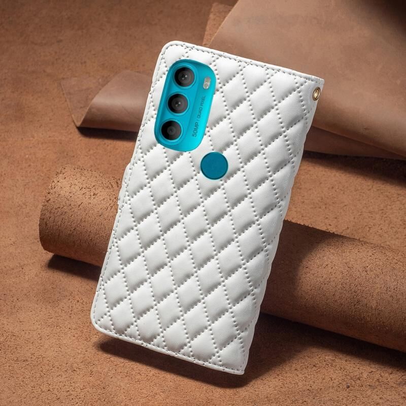 Για Motorola Moto G71 5G Diamond Lattice φερμουάρ πορτοφόλι δέρμα Flip υπόθεση τηλεφώνου (λευκό)