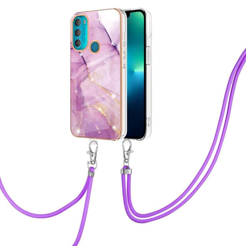 Θήκη κινητού τηλεφώνου για Motorola Moto G71 5G, με ηλεκτρολυτική μαρμάρινη επιφάνεια IMD TPU και κορδόνι (Μωβ 001)