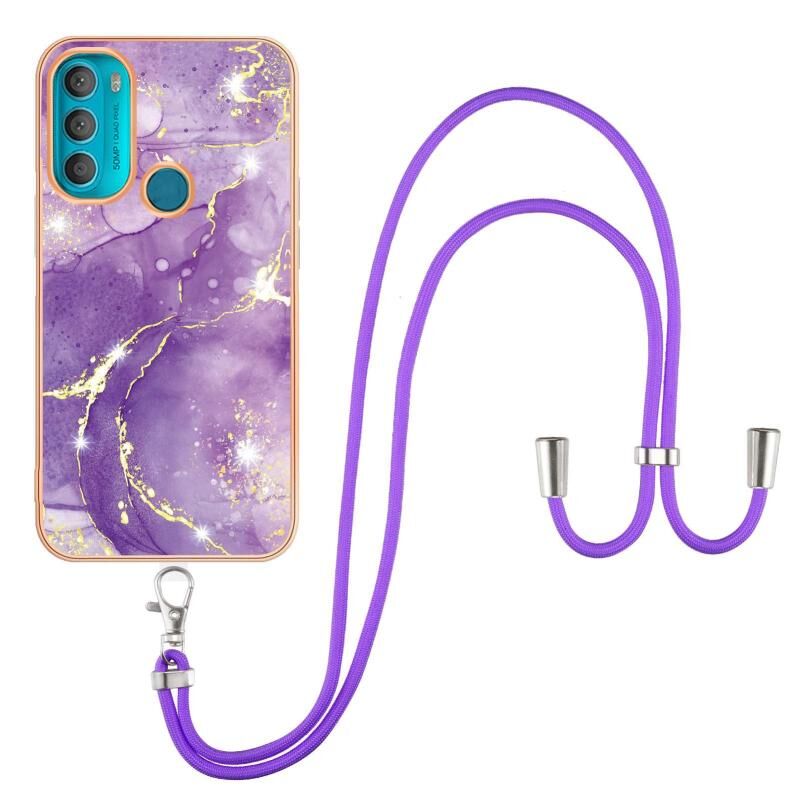 Θήκη κινητού τηλεφώνου για Motorola Moto G71 5G, με ηλεκτρολυτική μαρμάρινη επιφάνεια IMD TPU και κορδόνι (Μωβ 001)