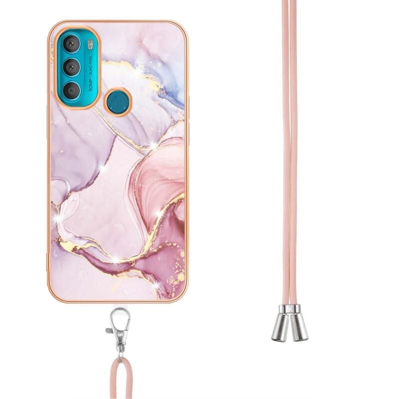 Θήκη κινητού τηλεφώνου για Motorola Moto G71 5G, με ηλεκτρολυτική μαρμάρινη επιφάνεια IMD TPU και κορδόνι (Μωβ 001)
