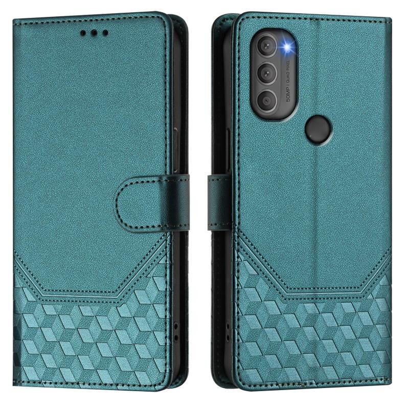 Για Motorola Moto G71 5G Honeycomb ανάγλυφο RFID δερμάτινη θήκη τηλεφώνου (Πράσινο παγώνι)