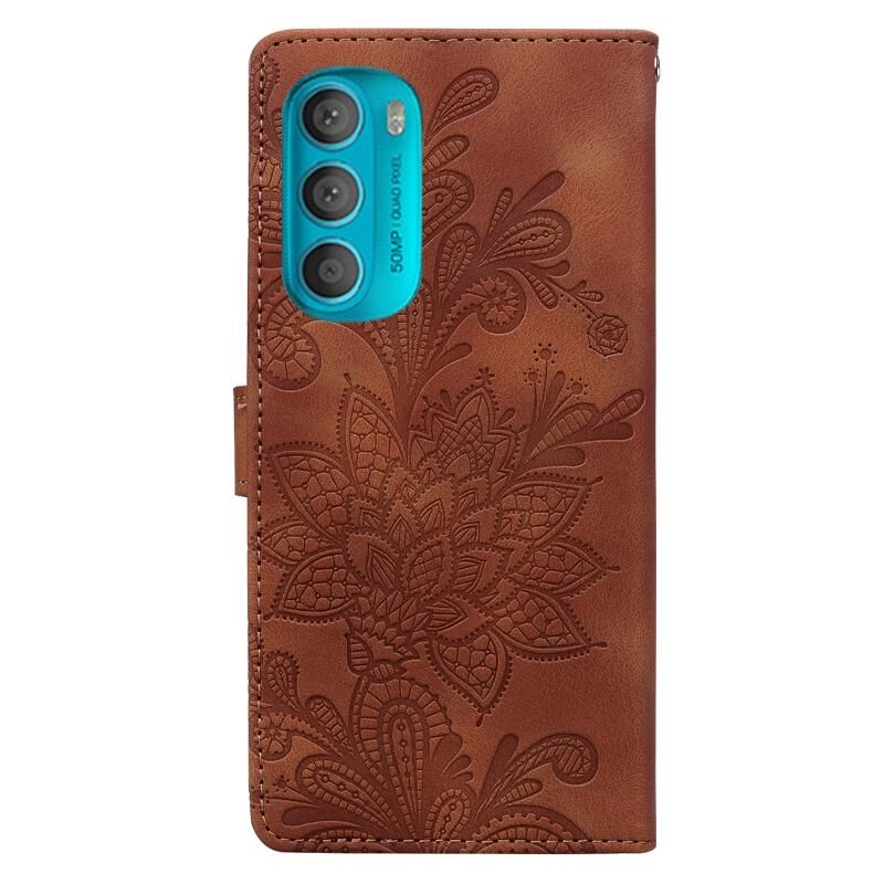 Θήκη κινητού τηλεφώνου Motorola Moto G71 5G από PU με δαντελένιο λουλουδάτο ανάγλυφο και μαγνητικό κούμπωμα, με λουρί καρπού (Πράσινο)