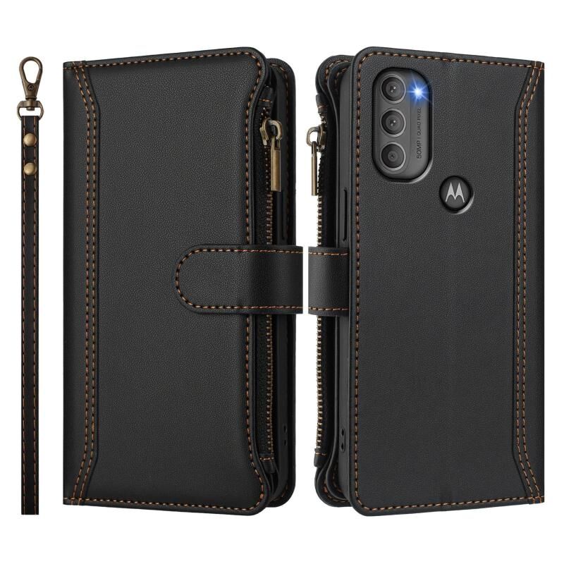 For Motorola Moto G71 5G Magnetic Closure 9 Card Slots Zipper Leather Case with Hand Strap(Black)