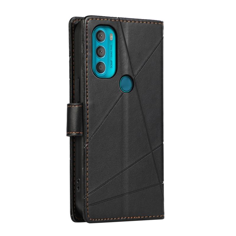 For Motorola Moto G71 5G PU Genuine Leather Texture Embossed Line Phone Case(Black)