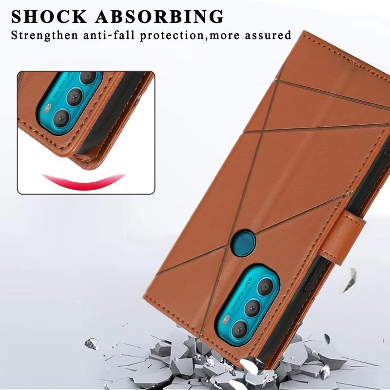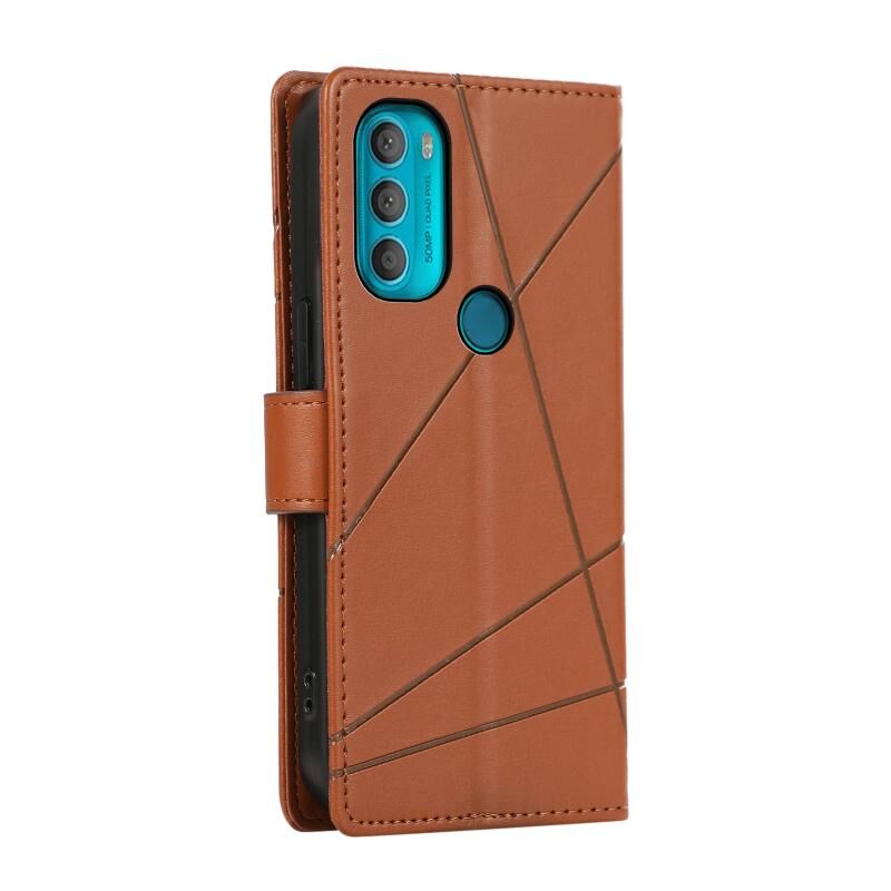 Θήκη τηλεφώνου για Motorola Moto G71 5G από γνήσιο δέρμα PU με ανάγλυφη υφή και γραμμές (Καφέ)
