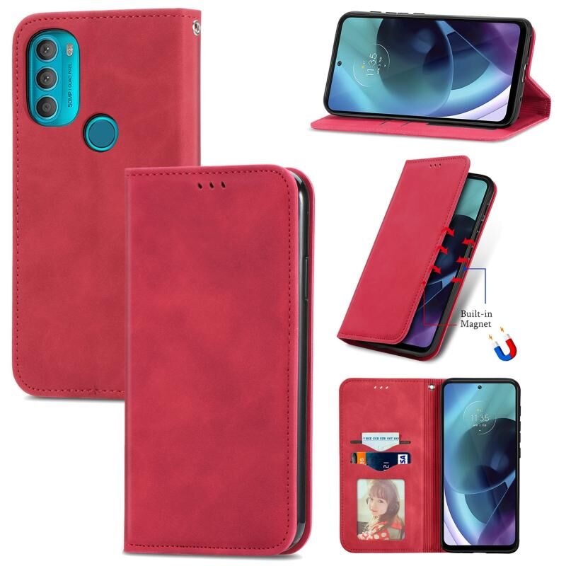 Για Motorola Moto G71 5G Retro Skin Feel μαγνητική οριζόντια Flip δερμάτινη θήκη τηλεφώνου (κόκκινο)