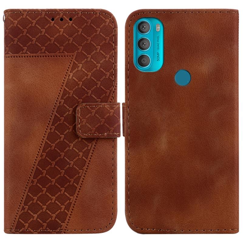 For Motorola Moto G71 5G Seven-shaped Embossed Leather Phone Case(Brown)