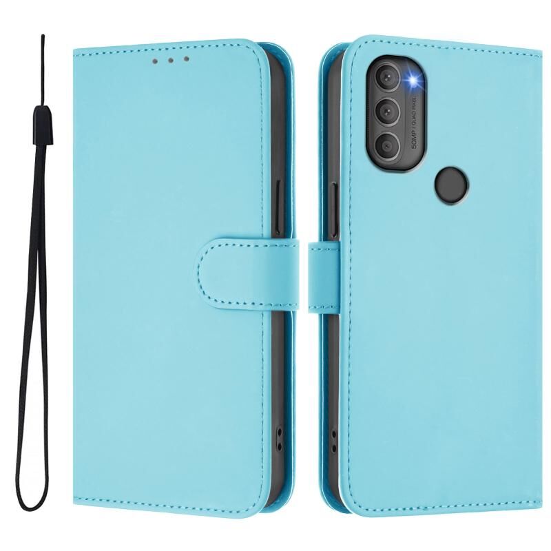 Για Motorola Moto G71 5G Skin Feel Solid Color Leather Phone Case με κορδόνι (Γαλάζιο του ουρανού)